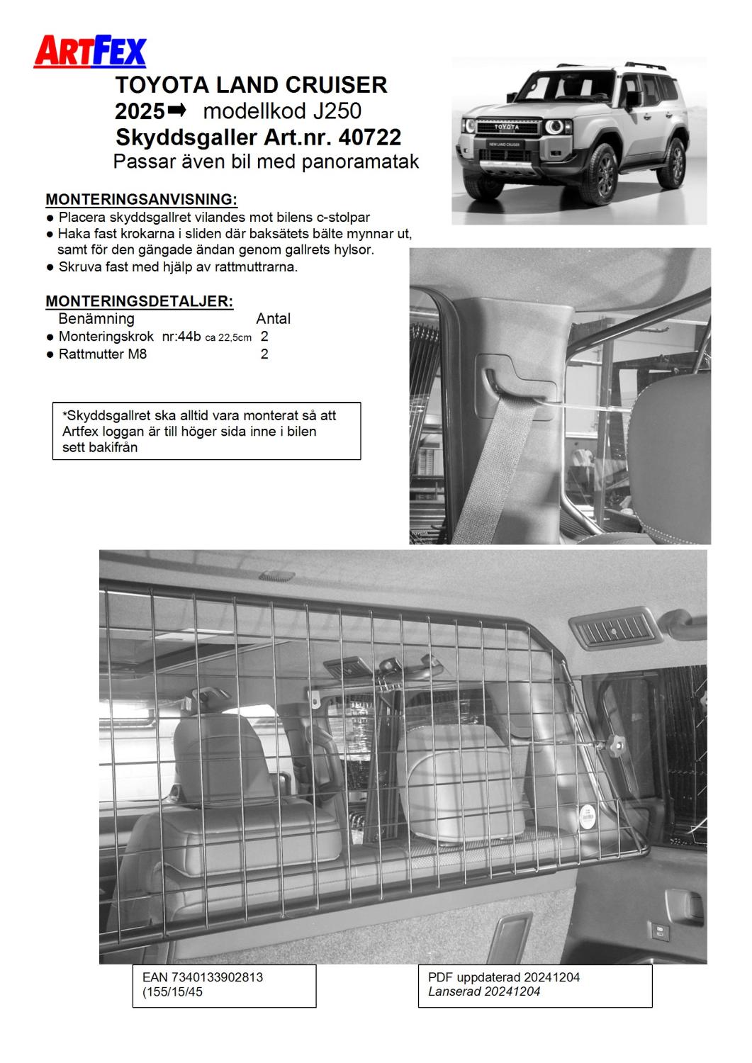 Modellanpassat Artfex Lastgaller, även kallat Skyddsgaller, till Toyoya Landcruiser J250 2025-