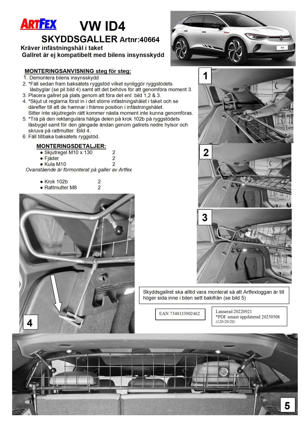 Modellanpassat Artfex Lastgaller, även kallat Skyddsgaller, till VW ID.4 2020-2022
