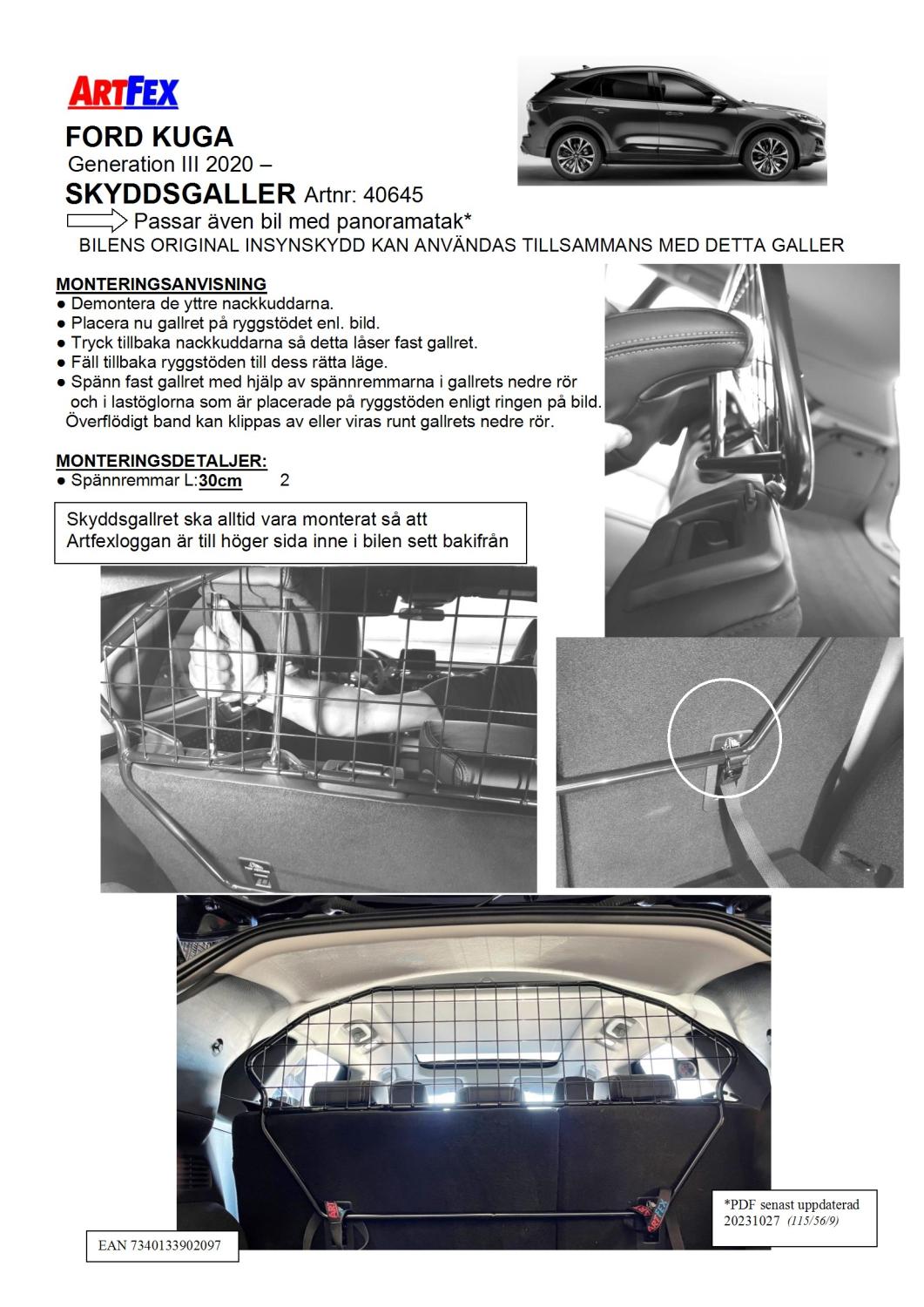 Modellanpassat Artfex Lastgaller, även kallat Skyddsgaller, till Ford Kuga 2020- Generation 3