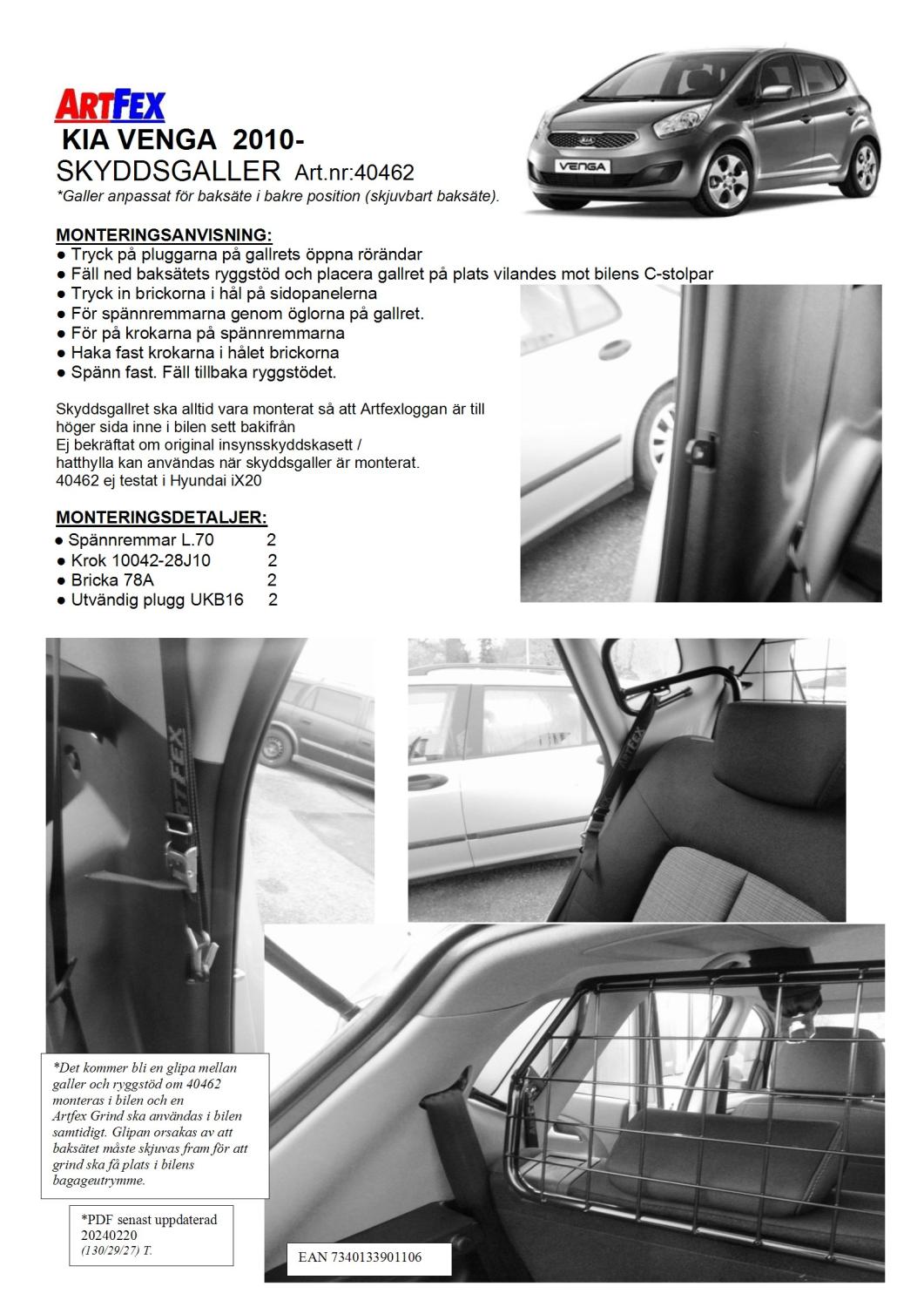 Modellanpassat Artfex Lastgaller, även kallat Skyddsgaller, till Kia Venga 2010-