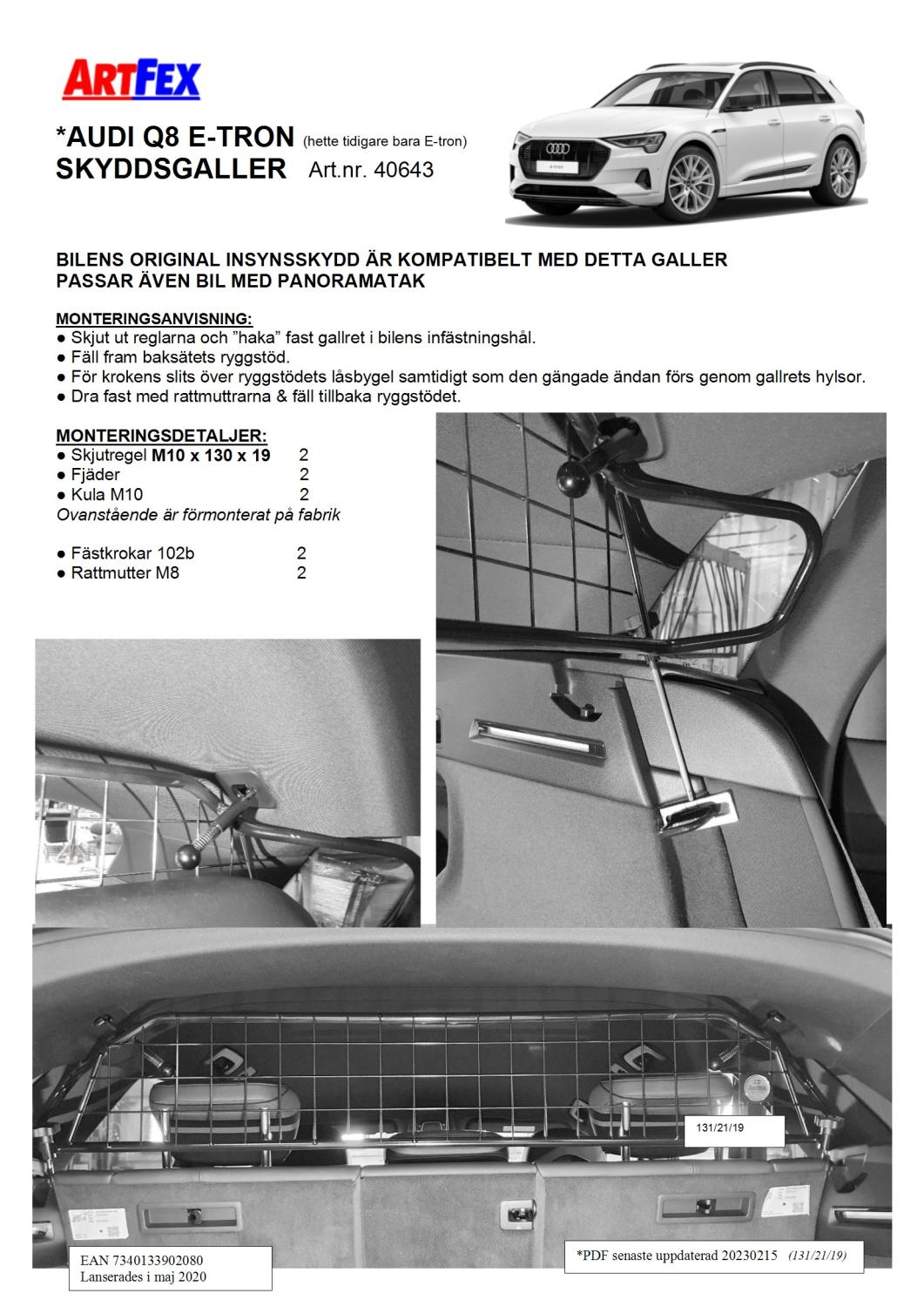Modellanpassat Artfex Lastgaller, även kallat Skyddsgaller, till Audi Q8 E-Tron 2022-