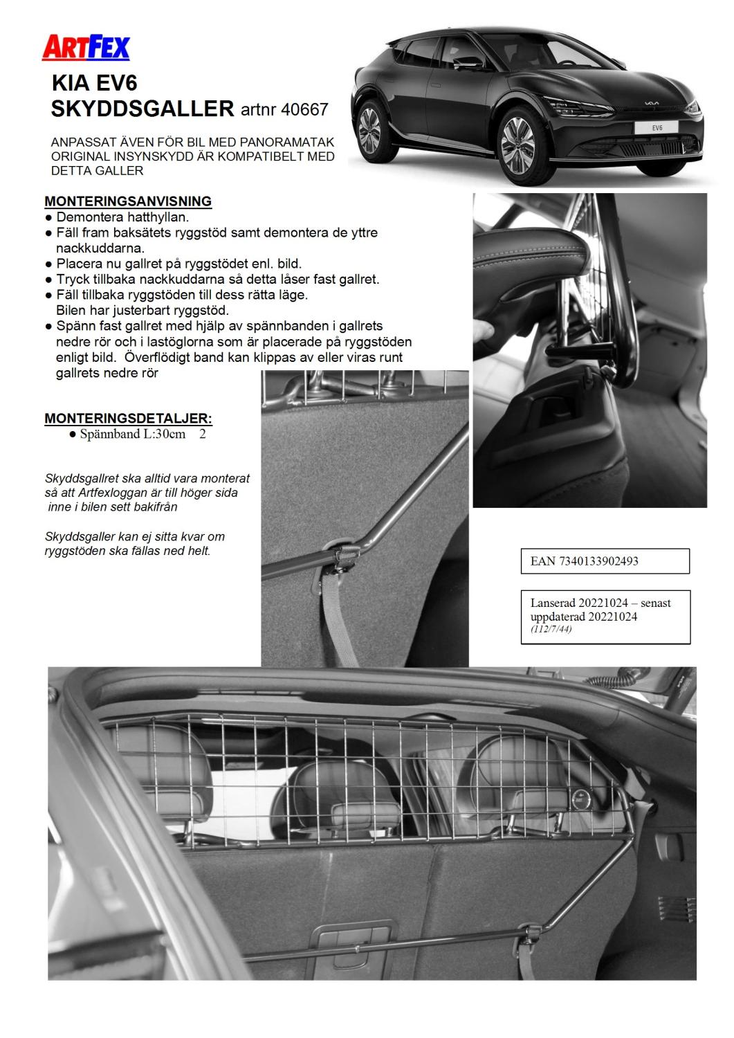 Modellanpassat Artfex Lastgaller, även kallat Skyddsgaller, till Kia EV6 2021-