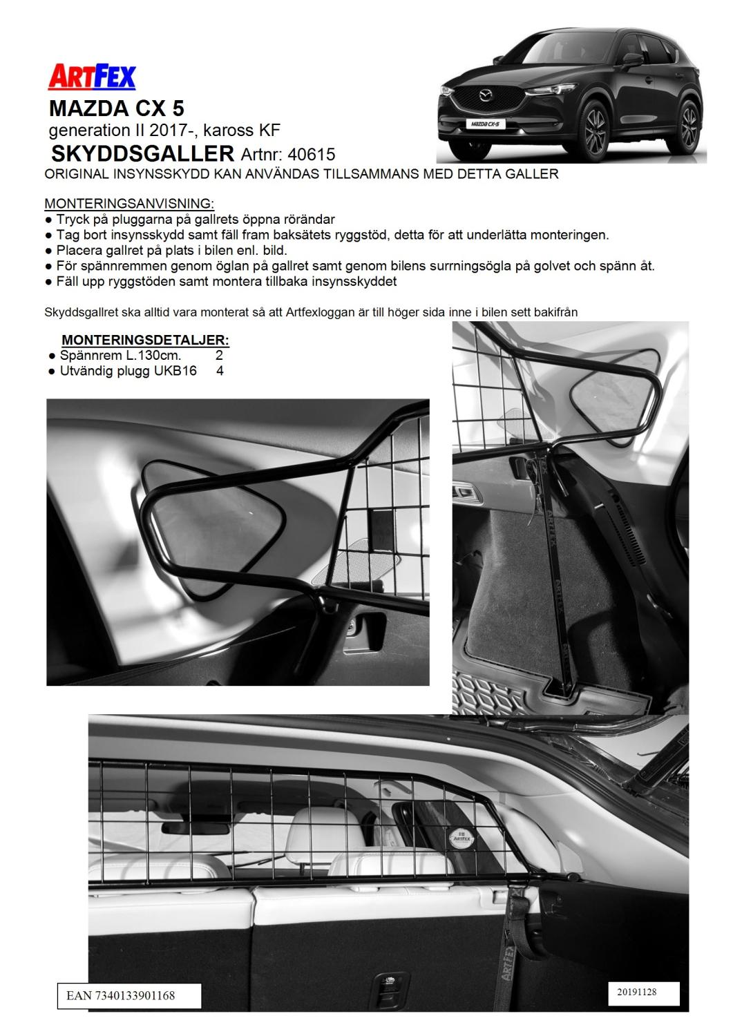 Modellanpassat Artfex Lastgaller, även kallat Skyddsgaller, till Mazda CX-5 2017- generation 2